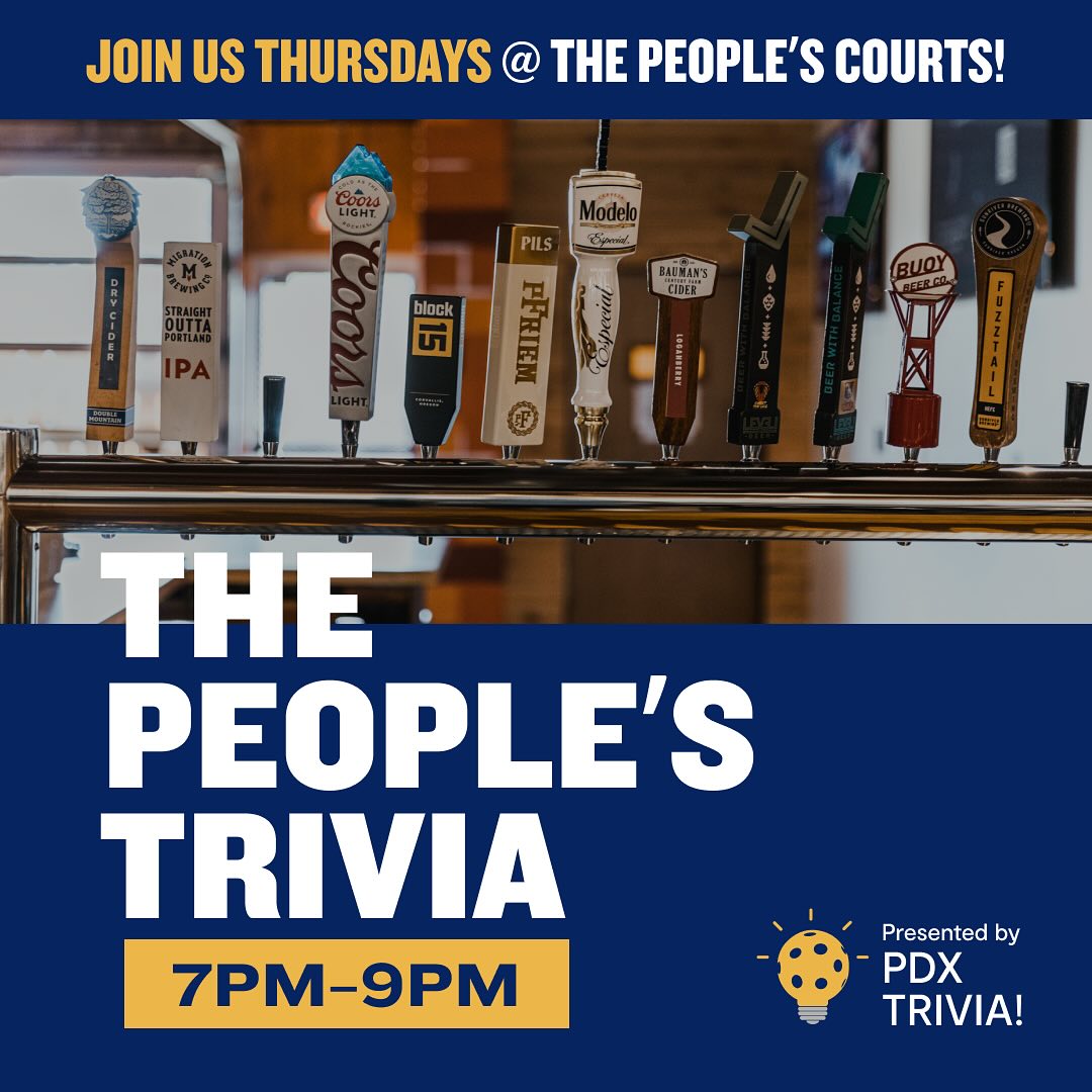 Love trivia? Bring your friends and come to The People’s Courts for The People’s Trivia Night! Dive into an evening of brain-teasing fun, laughter, and camaraderie. Hosted by the renowned Fin of PDX Trivia, this event promises a fantastic night out.